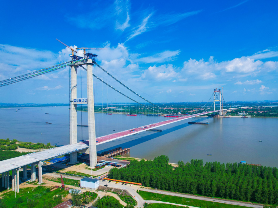 雙柳長(zhǎng)江大橋建成后,武漢新洲到鄂州的行車(chē)時(shí)間將由90分鐘縮短為5分鐘。通訊員楊鑫 攝