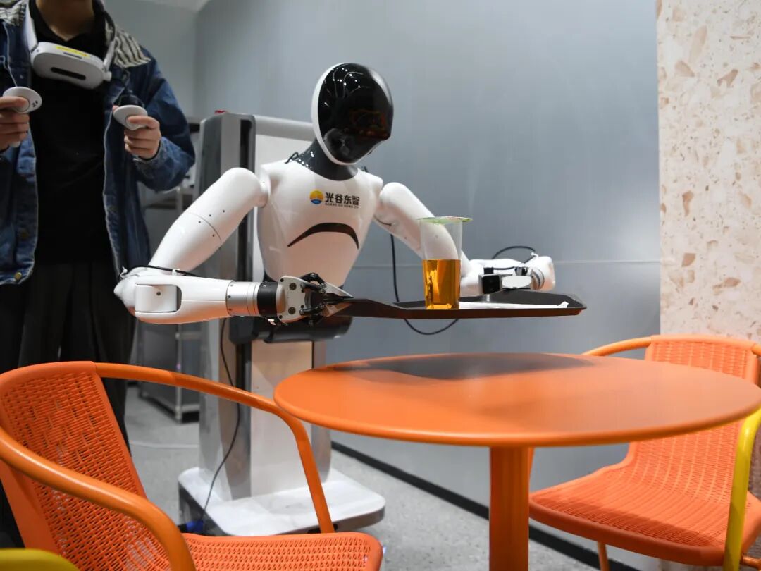 光谷東智機(jī)器人在奶茶店端茶倒水。記者高勇 攝