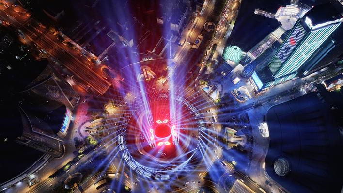 光谷星河廣場燈光秀。 (陳少哲 攝)