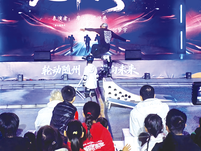 高難度輪滑技藝展示 (隨州日?qǐng)?bào)全媒記者鐘金輝攝)