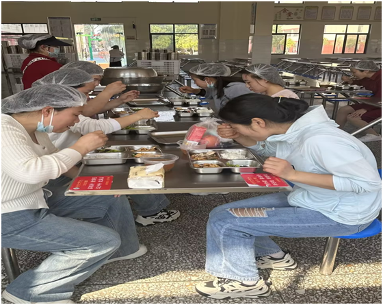 與此同時,學校創(chuàng)新推出“家長試餐+校領導+教師”三級監(jiān)督機制,每月開展“家長試餐日”活動,家長代表持邀請函全程參與食材驗收、后廚參觀、餐品試吃,親眼見證食材從智能冷庫到操作間的流轉,查看詳實臺賬與第三方抽檢報告,感受“色標管理”“生熟分離”“嚴格留樣”等規(guī)范流程。主廚推行的“減鹽少油”理念更讓家長放心,番茄炒蛋用代糖調味、紅燒獅子頭以豆腐替代部分豬肉的健康菜品設計,收獲了98%家長的五星好評。
