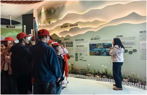 作為淮河生態(tài)知識(shí)傳播的重要平臺(tái),科普館通過現(xiàn)代化展示手段,為同學(xué)們打開了探索濕地奧秘的窗口。在專業(yè)講解員的引導(dǎo)下,同學(xué)們依次參觀了各個(gè)主題展區(qū),系統(tǒng)了解了淮河濕地的形成演變、生態(tài)功能及保護(hù)成果。