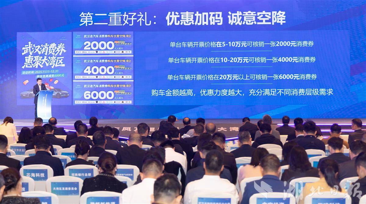 中國車谷品牌運(yùn)營中心現(xiàn)場發(fā)放車谷汽車消費(fèi)券,并宣布利好政策:即日起至2025年12月31日,大灣區(qū)消費(fèi)者購買“武漢造”“車谷造”相關(guān)車型,憑車谷汽車消費(fèi)券最高減免6000元。