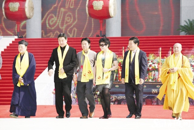 ◆北京師范大學(xué)教授于丹,省文聯(lián)副主席、著名作家熊召政,大洪山慈恩寺主持釋印順,湖北省道教協(xié)會會長吳誠真,著名歌手韓磊敬獻花籃。