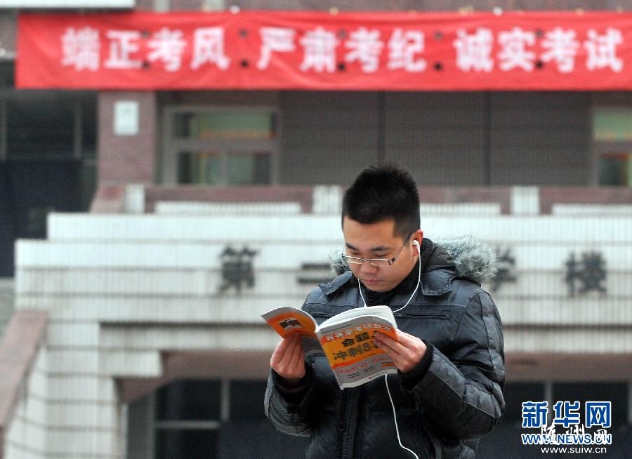 1月4日,考生在北京一處考點(diǎn)外,等候進(jìn)入考場(chǎng)。當(dāng)日,2014年全國(guó)碩士研究生入學(xué)統(tǒng)一考試?yán)_帷幕。 新華社記者公磊攝