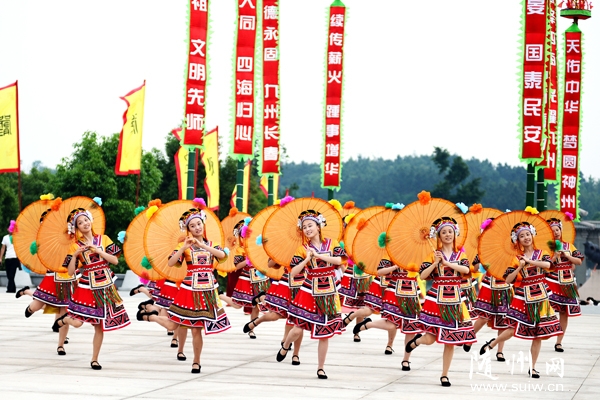 5月23日下午,甲午年世界華人炎帝故里尋根節(jié)謁祖大典儀式進(jìn)行最后一次著裝彩排,圖為彩排現(xiàn)場方陣表演。(本報(bào)記者李文軍攝)